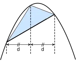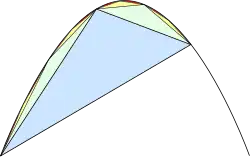 Archimède construit dans le segment de la parabole un triangle dont la médiane est parallèle à l'axe de la parabole, démontrant que son aire est maximale (proposition XVIII), et encadre le segment de parabole par ce triangle et le parallélogramme qui lui est associé (proposition XX).