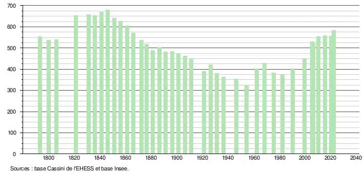 - ↑ Population municipale de référence en vigueur au 1er janvier 2025, millésimée 2022, définie dans les limites territoriales en vigueur au 1er janvier 2024, date de référence statistique : 1er janvier 2022.