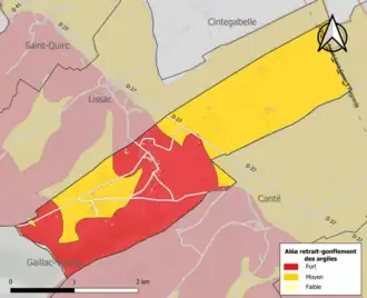 Les mouvements de terrains susceptibles de se produire sur la commune sont soit des glissements de terrains soit des mouvements liés au retrait-gonflement des argiles. Près de 50 % de la superficie du département est concernée par l'aléa retrait-gonflement des argiles, dont la commune de Labatut[34]. L'inventaire national des cavités souterraines permet par ailleurs de localiser celles situées sur la commune[35].