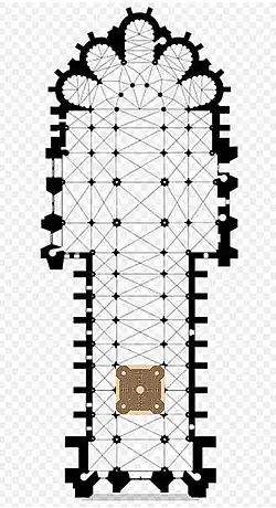- (en haut à droite) : Jean d'Orbais (1211-1231) fit les plans de la cathédrale et commença le chevet ;