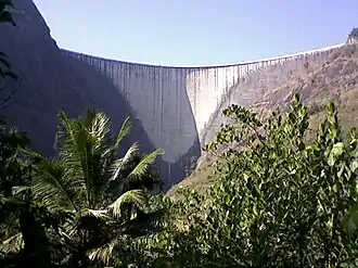Le barrage d'Idukki est un barrage voûte au Kerala en Inde sur le Periyar. Il est associé à une centrale hydroélectrique de 780 MW.