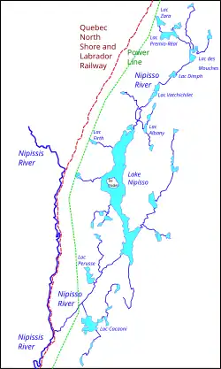 - 1 2 « Nipisso (lac) », sur Mémoire du Québec (consulté le )