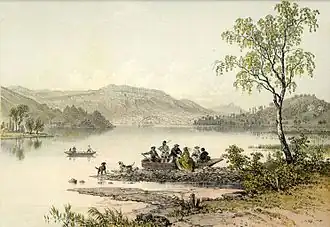 La découverte des sites palafittiques du lac d'Aiguebelette est relatée dans les années 1860[59],[20]. Au début du XXe siècle, le préhistorien Louis Schaudel mène une étude plus approfondie dont les résultats sont présentés en août 1908 au Congrès préhistorique de France alors tenu à Chambéry[20],[60], puis, des ramassages d'objets sont ensuite effectués par Louis Léger en 1921 et Henri Brun en 1938[20].