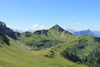 - à partir du parking du plateau de Cenise[3] via le col de Cenise 1 724 mètres (1h30, 400 m de dénivelé)[4].