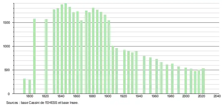 - ↑ Fiches Insee - Populations de référence de la commune pour les années 2006, 2007, 2008, 2009, 2010, 2011, 2012, 2013, 2014, 2015, 2016, 2017, 2018, 2019, 2020, 2021 et 2022.