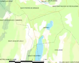 - ↑ « Orthodromie entre Laffrey et Lavaldens », sur fr.distance.to (consulté le ).