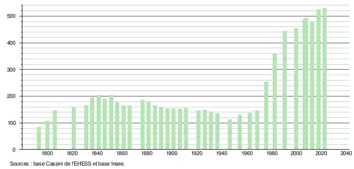 - ↑ Fiches Insee - Populations de référence de la commune pour les années 2006, 2007, 2008, 2009, 2010, 2011, 2012, 2013, 2014, 2015, 2016, 2017, 2018, 2019, 2020, 2021 et 2022.
