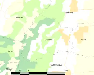 - ↑ Stephan Georg, « Distance entre Lagarde et Vic-en-Bigorre », sur fr.distance.to (consulté le ).