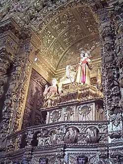 Sa façade modeste aux tours dissymétriques, datant de 1715, contraste singulièrement avec l'extravagance de l'intérieur, richement décoré. Ses azulejos blancs et bleus dorés (XVIIIe siècle), ses bois sculptés (talha dourada, qui comptent parmi les plus beaux du pays) couvrent toute la surface des parois de la nef, avec les six toiles baroques de Mestre José Joaquim Rasquinho représentant les miracles de saint Antoine. Un coffre de bois peint en trompe-l'œil trompe sur la taille de l'objet. Les statues polychromes de chérubins jouant avec des animaux et des poissons sont remarquables.