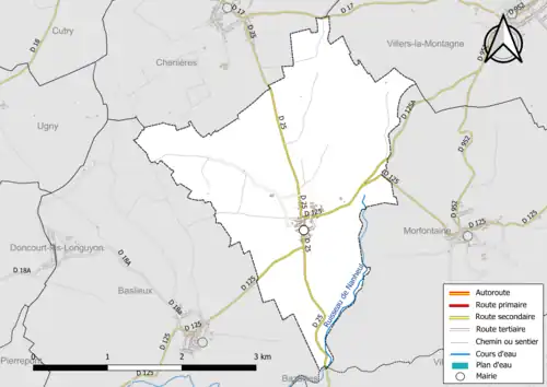 Les communes limitrophes sont Baslieux, Chenières, Morfontaine, Ville-au-Montois et Villers-la-Montagne.
