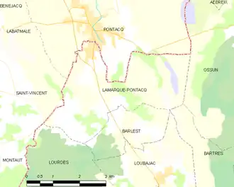 Lamarque-Pontacq est limitrophe de six autres communes. Au sud, le territoire de Loubajac est distant d'une cinquantaine de mètres.
