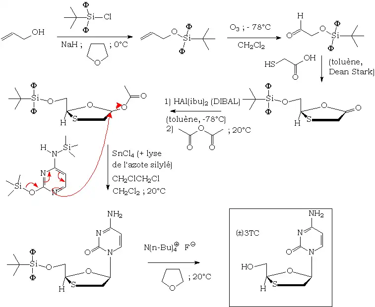 La lamivudine (2',3'-didéoxy-3'-thiacytidine, 3TC) est un puissant inhibiteur nucléosidique de la transcriptase inverse commercialisé sous le nom d'Epivir. Elle peut inhiber les deux types (1 et 2) de transcriptase inverse de VIH ainsi que celle du virus de l'hépatite B. Pour qu'elle devienne active, il faut qu'elle soit phosphorylée sous sa forme triphosphate. Le triphosphate de 3TC inhibe ainsi l'ADN polymérase cellulaire. Elle est actuellement le médicament antirétroviral le plus utilisé, prescrit pratiquement systématiquement, et ceci depuis son introduction dans la trithérapie en 1995-1996, années où la mortalité due au Sida a chuté considérablement.