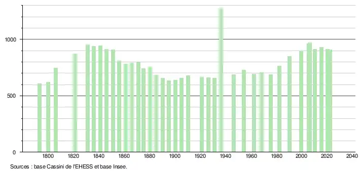 - ↑ Fiches Insee - Populations de référence de la commune pour les années 2006, 2007, 2008, 2009, 2010, 2011, 2012, 2013, 2014, 2015, 2016, 2017, 2018, 2019, 2020, 2021 et 2022.