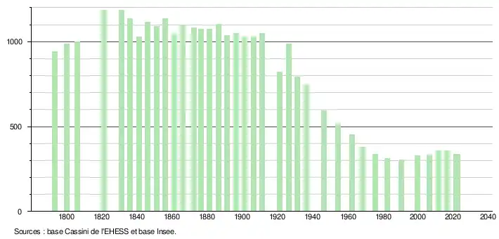 339 hab. (2022 en évolution de −5,31 % par rapport à 2016)