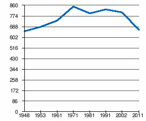 - 1 2 (sr + en) « Livre 20 : Vue d'ensemble comparative de la population en 1948, 1953, 1961, 1971, 1981, 1991, 2002 et 2011, données par localités) » [PDF], pages du recensement de 2011 en Serbie - Institut de statistique de la république de Serbie, (consulté le )