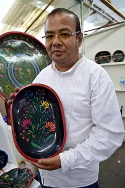 Patzcuaro est réputé pour ses plateaux profonds et ses petites boîtes[12], mais ses conceptions ne changent guère changé depuis le XVIIIe siècle, alors que l’artisanat est à son apogée et que plusieurs artisans sont remarqués dans les archives contemporaines. Une de ces familles, De la Cerda, continue de fabriquer de la laque dans la ville[13],[14]. Ces modèles traditionnels comprennent des éléments d'origine orientale, ainsi que des dessins autochtones et européens[15].