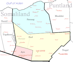 - ↑ (en) Markus V. Hoehne, « Puntland and Somaliland Clashing in Northern Somalia: Who Cuts the Gordian Knot? », sur hornofafrica.ssrc.org, (consulté le ).