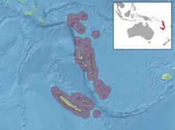 Cette espèce se rencontre au Vanuatu et aux îles Loyauté en Nouvelle-Calédonie[1].
