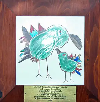 - En 1989, l'Institut de la radiotélévision pour enfants (maintenant L'Alliance pour l'enfant et la télévision[12]) lui décerne une distinction "pour contribution exceptionnelle à la qualité et au progrès de la programmation pour enfants au Canada".