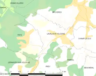 Situation géographique de Laval-sur-Vologne.