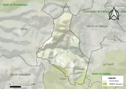 L'occupation des sols de la commune, telle qu'elle ressort de la base de données européenne d’occupation biophysique des sols Corine Land Cover (CLC), est marquée par l'importance des forêts et milieux semi-naturels (68,5 % en 2018), une proportion identique à celle de 1990 (68,5 %). La répartition détaillée en 2018 est la suivante : forêts (40,8 %), zones agricoles hétérogènes (30,6 %), milieux à végétation arbustive et/ou herbacée (27,7 %), cultures permanentes (0,9 %)[9]. L'évolution de l’occupation des sols de la commune et de ses infrastructures peut être observée sur les différentes représentations cartographiques du territoire : la carte de Cassini (XVIIIe siècle), la carte d'état-major (1820-1866) et les cartes ou photos aériennes de l'IGN pour la période actuelle (1950 à aujourd'hui)[Carte 1].