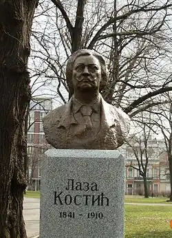 Lazar Kostić, dit « Laza Kostić » (en serbe cyrillique : Лаза Костић ; né le à Kovilj et mort le à Vienne) était un écrivain serbe, qui fut poète, journaliste, dramaturge et esthéticien. Il était membre de l'Académie serbe des sciences et des arts[1]. Il est considéré comme l'un des plus grands écrivains du romantisme serbe.