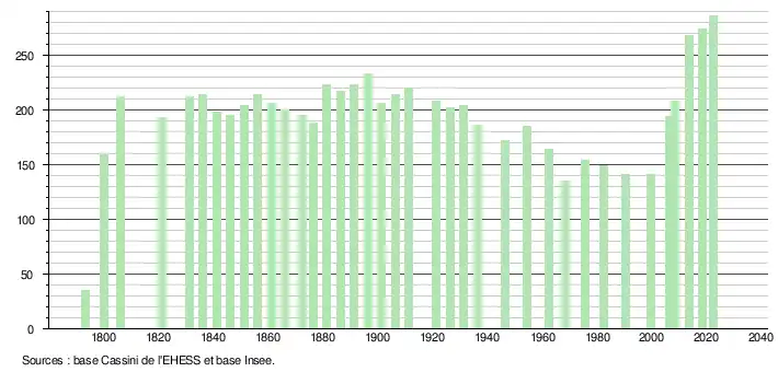 286 hab. (2022 en évolution de +2,14 % par rapport à 2016)