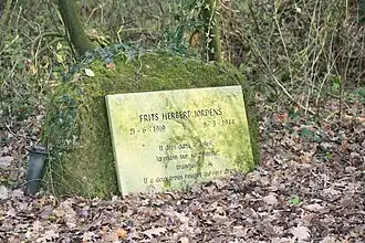 - ↑ La plaque à la mémoire de Frits Iordens a été déposée au pied d’un arbre, sur les lieux de l’ancien Camp de concentration Erika qui était situé à Ommen. Aujourd’hui transformé en parc, les autorités de la ville y ont édifié un monument commémoratif, en mémoire de toutes les victimes, non nominatives (Ommen, monument „Kamp Erika“. (consulté le ).). La plaque destinée à Frits Iordens a probablement été déposée par une personne anonyme.