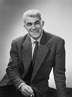 Photo en noir et blanc d'un homme d'une quarantaine d'années en smoking, souriant.