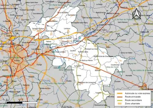 Situation de la communauté de communes dans la Sarthe. | |
