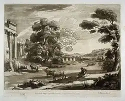 Claude Lorrain est un peintre français établi en Italie. Appartenant à la période de l’art baroque, il s’inscrit dans le courant du classicisme français, dans lequel il excelle dans la peinture de paysage. Dans son œuvre, il reflète un nouveau concept dans l’élaboration du paysage en se basant sur des références classiques, le « paysage idéal », qui met en évidence une conception idéale de la nature et du monde intérieur de l’artiste. Cette façon de traiter le paysage lui donne un caractère plus élaboré et intellectuel et devient l’objet principal de la création de l’artiste, de la mise en forme de sa conception du monde, de son interprétation de sa poésie, qui évoque un espace idéal et parfait[1].