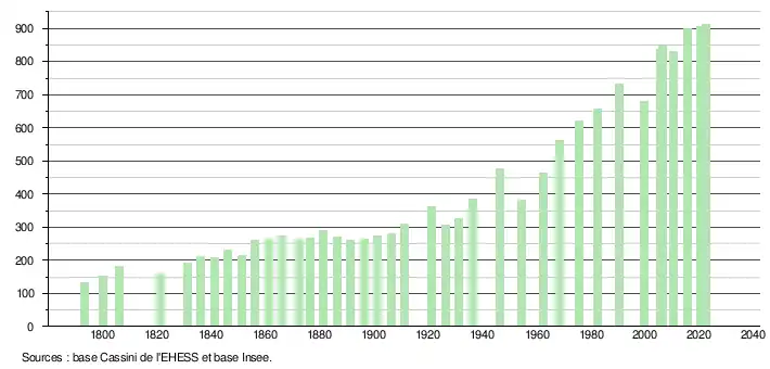- ↑ Fiches Insee - Populations de référence de la commune pour les années 2006, 2007, 2008, 2009, 2010, 2011, 2012, 2013, 2014, 2015, 2016, 2017, 2018, 2019, 2020, 2021 et 2022.