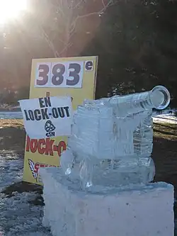Canon de glace disposé par les employés face au siège du journal au 383e jour du lock-out.