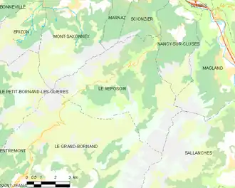 Plan du territoire du Reposoir et des communes limitrophes.
