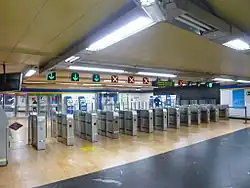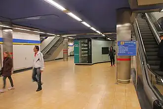 La station possède trois accès équipés d'escaliers et d'escaliers mécaniques ainsi qu'un quatrième par ascenseur directement depuis la rue. Les installations souterraines permettent les correspondances entre les quais respectifs des lignes 3 et 6.