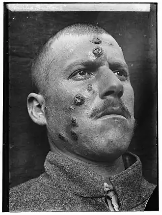 La leishmaniose muco-cutanée provoque la destruction partielle ou totale des muqueuses du nez, de la bouche et de la gorge[2].