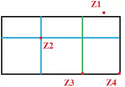 - Le point est à l'intérieur du rectangle, alors il est le sommet de 4 nouveaux rectangles.