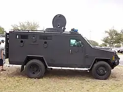 - EOD ( Elimination des explosifs) - véhicule blindé "BombCat" pour les unités de déminage avec support pour un grand robot de déminage, avec rampe rabattable et plate-forme à commande hydraulique pour le déploiement. Peut également inclure une caméra zoom montée sur le toit avec éclairage, une caméra thermique, un équipement CBRNE et des capteurs de communication avancés sur demande[19],[20].