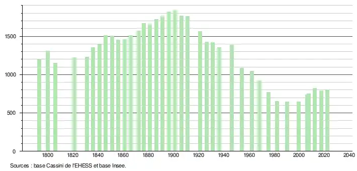 - ↑ Fiches Insee - Populations de référence de la commune pour les années 2006, 2007, 2008, 2009, 2010, 2011, 2012, 2013, 2014, 2015, 2016, 2017, 2018, 2019, 2020, 2021 et 2022.