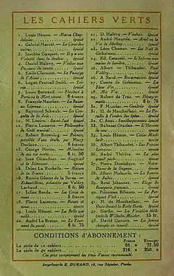 - ↑ Les Cahiers verts sur le site Livresanciens-tarascon.blogspot.com.