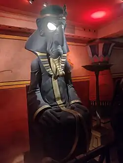Au cours de la cinquième épreuve, Astérix doit soutenir l'insoutenable regard d'Iris, un mage égyptien capable de persuader les gens de se conduire comme des animaux[4]. Cet hypnotiseur est très vite décontenancé par les interruptions du petit Gaulois qui le questionne sans relâche au sujet de ses yeux lumineux (« Vous pouvez en allumer un seul à la fois ? »). En dernier ressort, l'Égyptien lui intime l'ordre de répéter : « Je suis un sanglier, je suis un sanglier ! ». Astérix reformule alors cette suggestion (« Tu es un sanglier, tu es un sanglier ! ») de sorte qu'Iris finit par s'auto-hypnotiser avant de déguerpir à quatre pattes.
