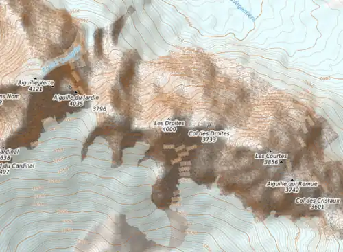 Les Droites sont le moins élevé des 82 sommets de plus de 4 000 mètres d'altitude des Alpes. Elles sont situées sur l'arête qui court de l'aiguille Verte au Courtes, séparent le glacier d'Argentière du bassin de Talèfre.