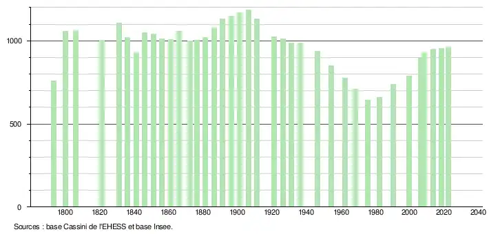 - ↑ Fiches Insee - Populations de référence de la commune pour les années 2006, 2007, 2008, 2009, 2010, 2011, 2012, 2013, 2014, 2015, 2016, 2017, 2018, 2019, 2020, 2021 et 2022.