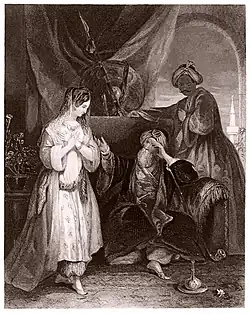 - ↑ Situation inspirée de l'histoire du Grand Vizir Topal Osman Pacha et rapportée par le Mercure de France en janvier 1734.