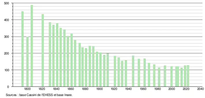 - ↑ Population municipale de référence en vigueur au 1er janvier 2025, millésimée 2022, définie dans les limites territoriales en vigueur au 1er janvier 2024, date de référence statistique : 1er janvier 2022.