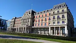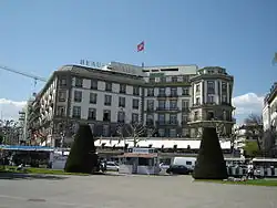 Les fortifications sont démantelées à partir de 1850 et plusieurs nouveaux quartiers se développent au-delà des terrains occupés par les fortifications (à l'emplacement des anciens faubourgs) : Les Eaux-Vives, Plainpalais, La Jonction et Les Pâquis. Les hôteliers construisent des établissements de luxe le long du lac — Hôtel de Russie, Hôtel de la Paix, Hôtel Richemond (1875), Hôtel Beau-Rivage ou encore Hôtel d'Angleterre — dont la plupart existent encore aujourd'hui, l'Hôtel National devenant plus tard le Palais Wilson.