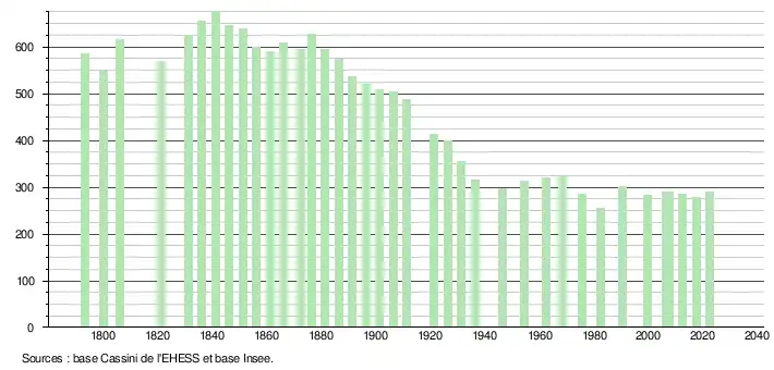 - ↑ Population municipale de référence en vigueur au 1er janvier 2025, millésimée 2022, définie dans les limites territoriales en vigueur au 1er janvier 2024, date de référence statistique : 1er janvier 2022.