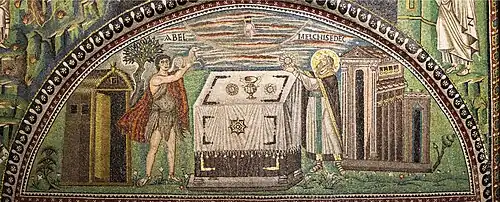 - ↑ (VIII, 12:21-23) : « Tu as accueilli le sacrifice d’Abel, comme venant d’un saint et tu as repoussé l’offrande de Caïn, le fratricide […]. C’est toi qui as délivré Abraham de l'impiété de ses ancêtres, qui l'as établi héritier du monde et lui fis voir ton Christ. Tu as établi Melchisédech comme grand prêtre de ton culte. »