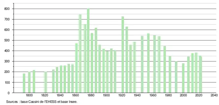340 hab. (2022 en évolution de −10,99 % par rapport à 2016)