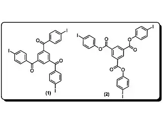 - ↑ F. Pigge, V. Vangala, P. Kapadia, D. Swenson, N. Rath et Comm Chem, Hexagonal Crystalline Inclusion Complexes of 4-Iodophenoxy Trimesoate, vol. 38, , 4726–2728 p.